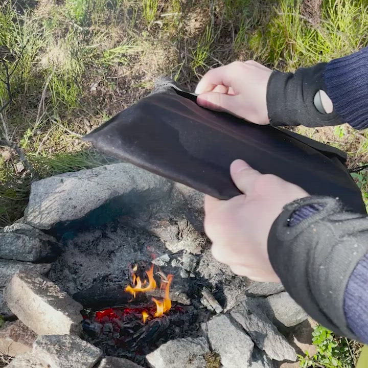 Grillristen er laget av solid titan som gjør at den kan brukes direkte over bålet uten at den deformeres eller faller fra hverandre. Titan ruster heller ikke slik som en grillrist i stål ville gjort. Tar nesten ikke plass i sekken, når du plasserer den ned langs ryggen. Leveres i praktisk stofftrekk.